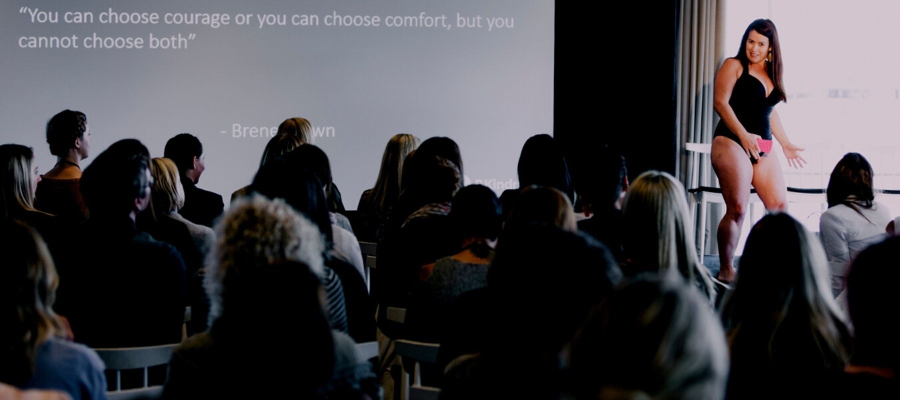 I once delivered a keynote in my bathing suit to 120 professional women to demonstrate that happy change is found when you learn to get comfortable with discomfort (watch below). It went viral, drove a global media frenzy and created a global movement.